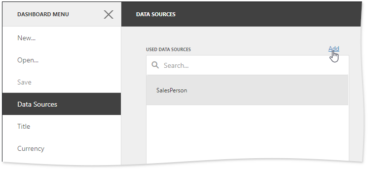 To invoke this wizard, go to the Data Sources page of the dashboard menu and click Add button.